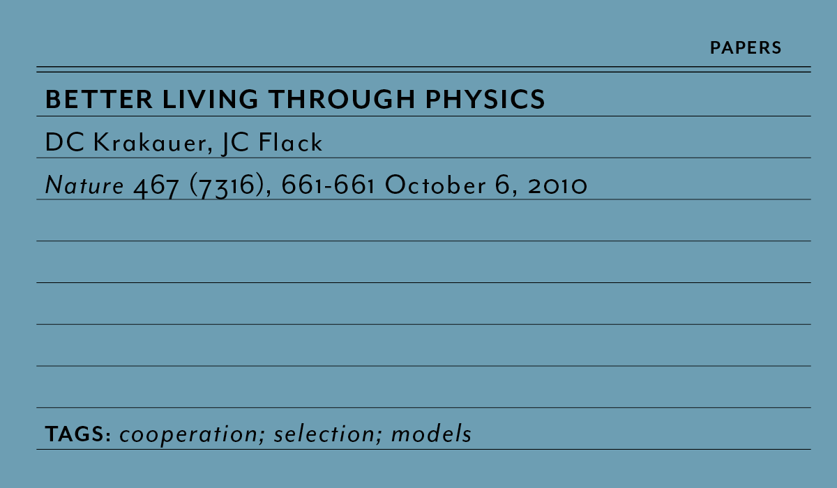 papers David C. Krakauer 5/5/11 papers David C. Krakauer 5/5/11 2011 The challenges and scope of theoretical biology Read More papers David C. Krakauer 1/1/11 papers David C. Krakauer 1/1/11 2011 The Star Gazer and the Flesh Eater- Elements of a Theory of Metahistory Read More papers David C. Krakauer 10/6/10 papers David C. Krakauer 10/6/10 2010 Better living through physics Read More